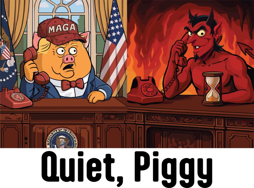 All the variations of Quiet, Piggy are waiting for you at https://trumptyverse.printify.me