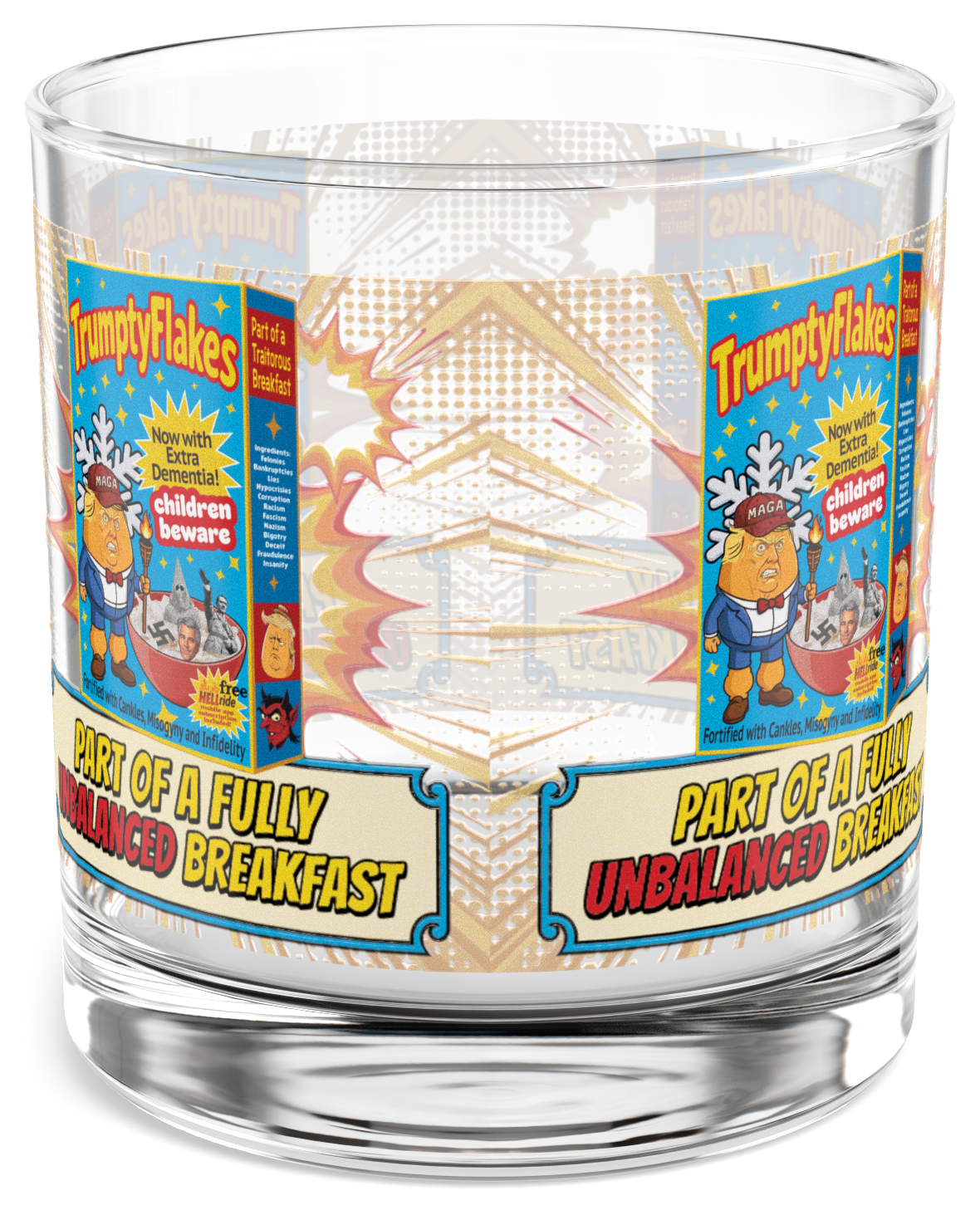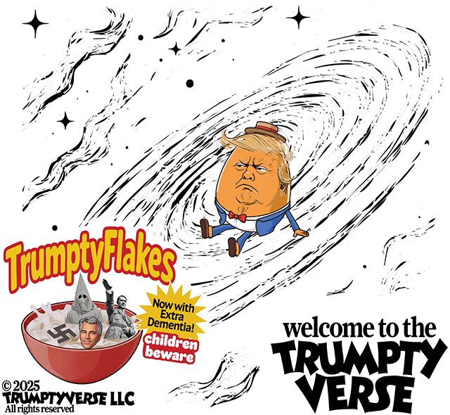 If DenialFlakes is the frosty delusion of the followers, TrumptyFlakes is the fire-breathing chaos of the leader himself — served piping hot with a heaping scoop of authoritarian leftovers.