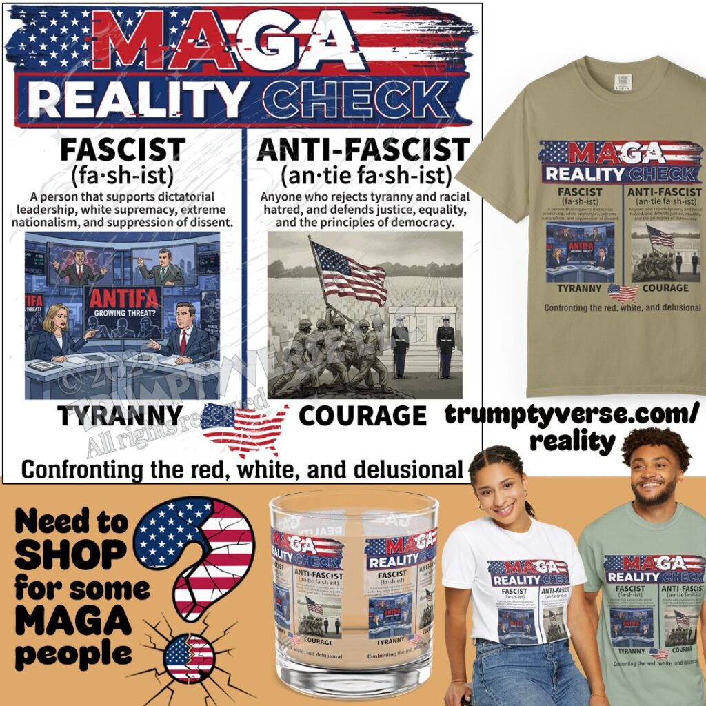 MAGA Reality Check is a TrumptyVerse signature series exposing America’s great divide between what is said and what is real. Each drop pairs two truths side by side: the narrative and the reality.
