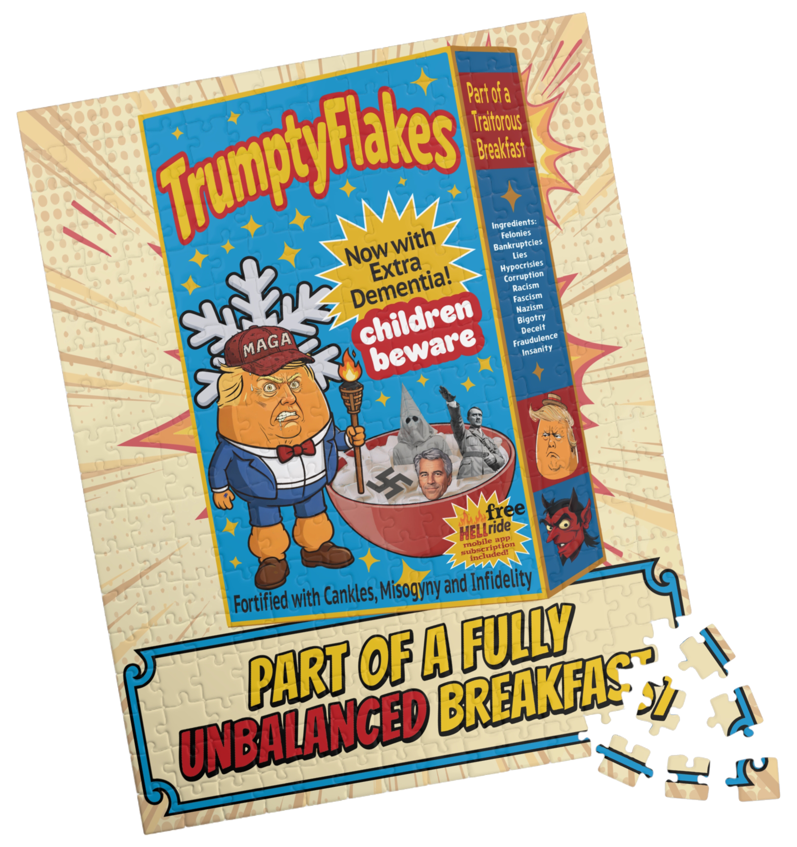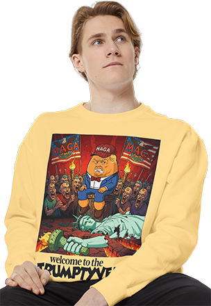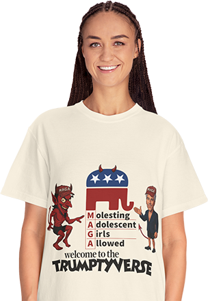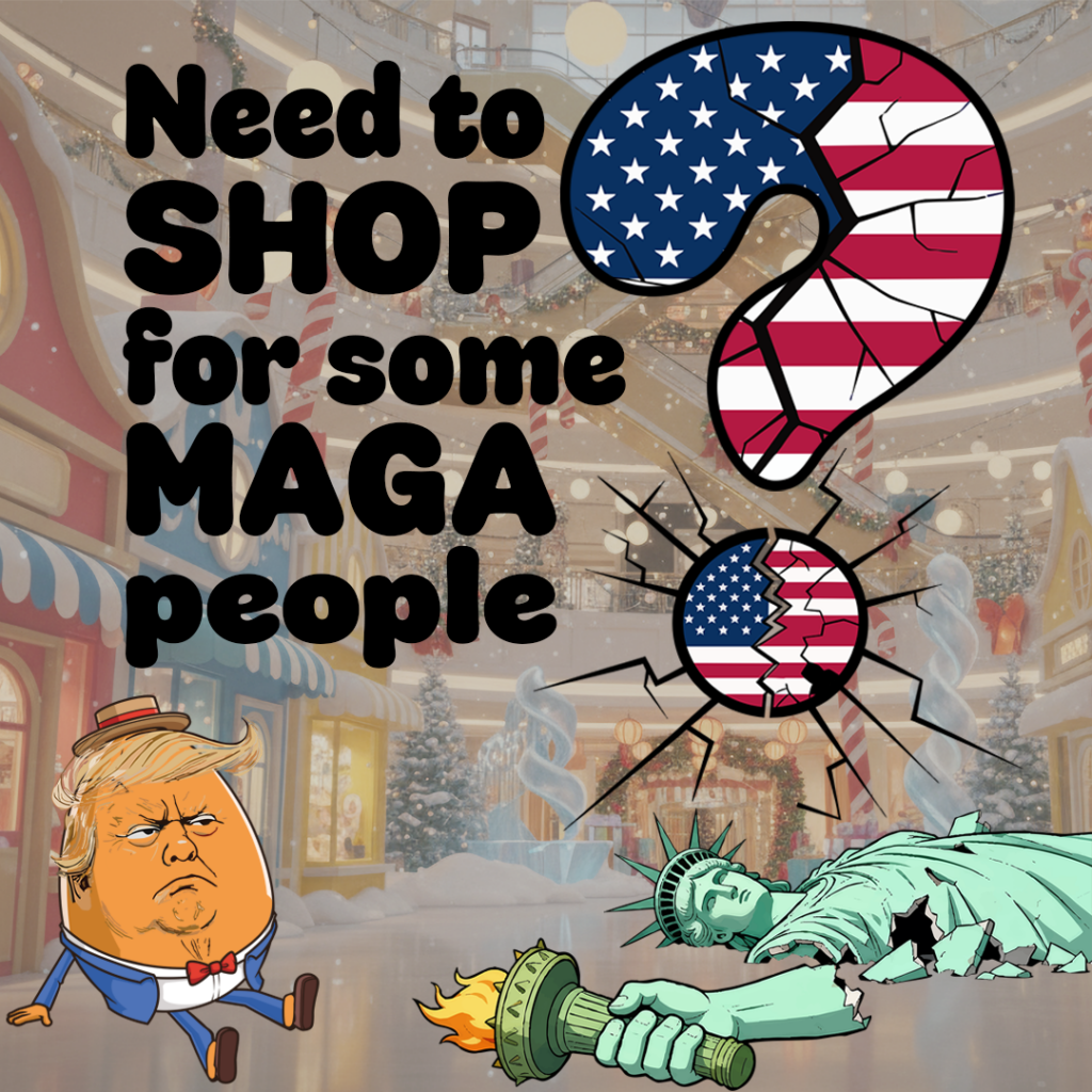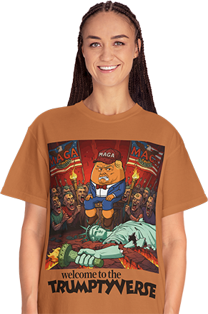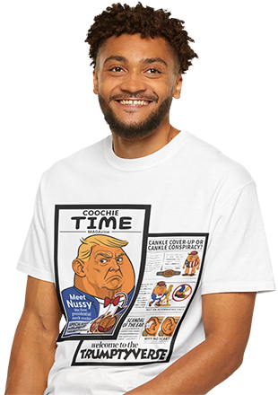 From tees to mugs that mock the madness, every purchase fuels independent political satire and free-speech art.